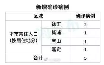 市衛(wèi)健委今早(2月4日)通報:2020年2月3日12—24時,上海市排除新型冠狀病毒感染的肺炎疑似病例35例;新增確診病例5例,其中1例重癥。新增確診病例均為本市常住人口。具體情況如下: